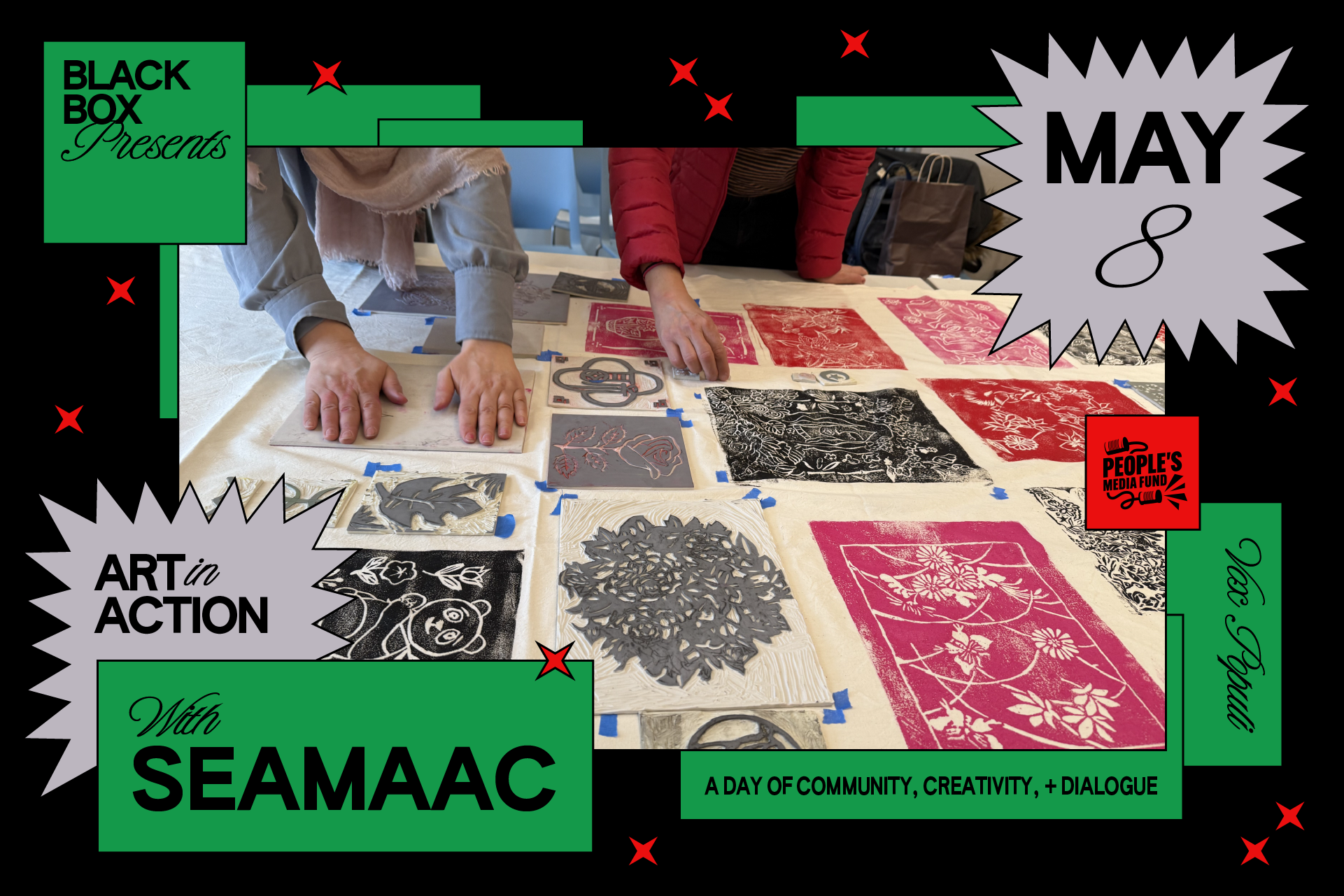 As part of Black Box Presents: Arts in Action, SEAMAAC brings a day of community, creativity, and dialogue to Vox Populi. The program features a documentary screening, a panel discussion, and multimedia presentations highlighting SEAMAAC’s arts initiatives and community programs. Participants will also engage in interactive activities designed to spark reflection, exchange ideas, and imagine new possibilities for creative action and collective organizing.