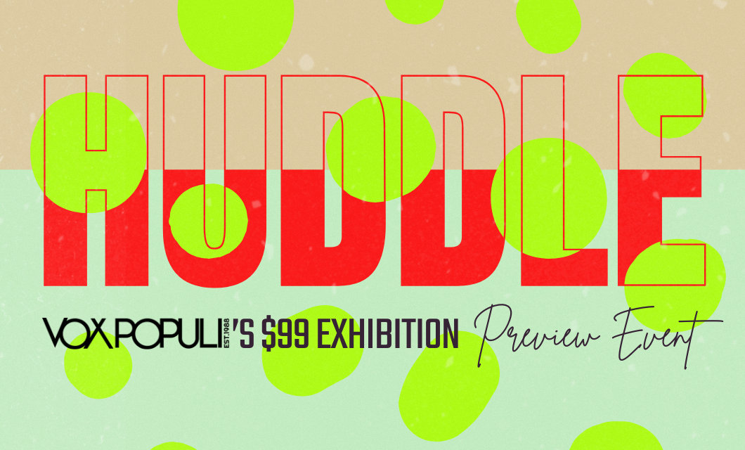 Join us for one of Vox Populi’s biggest nights of the year, our Preview Night for Huddle: A $99 Exhibition. For the past three years, this event has brought together 200+ attendees, and we’re expecting an even bigger turnout in 2025.