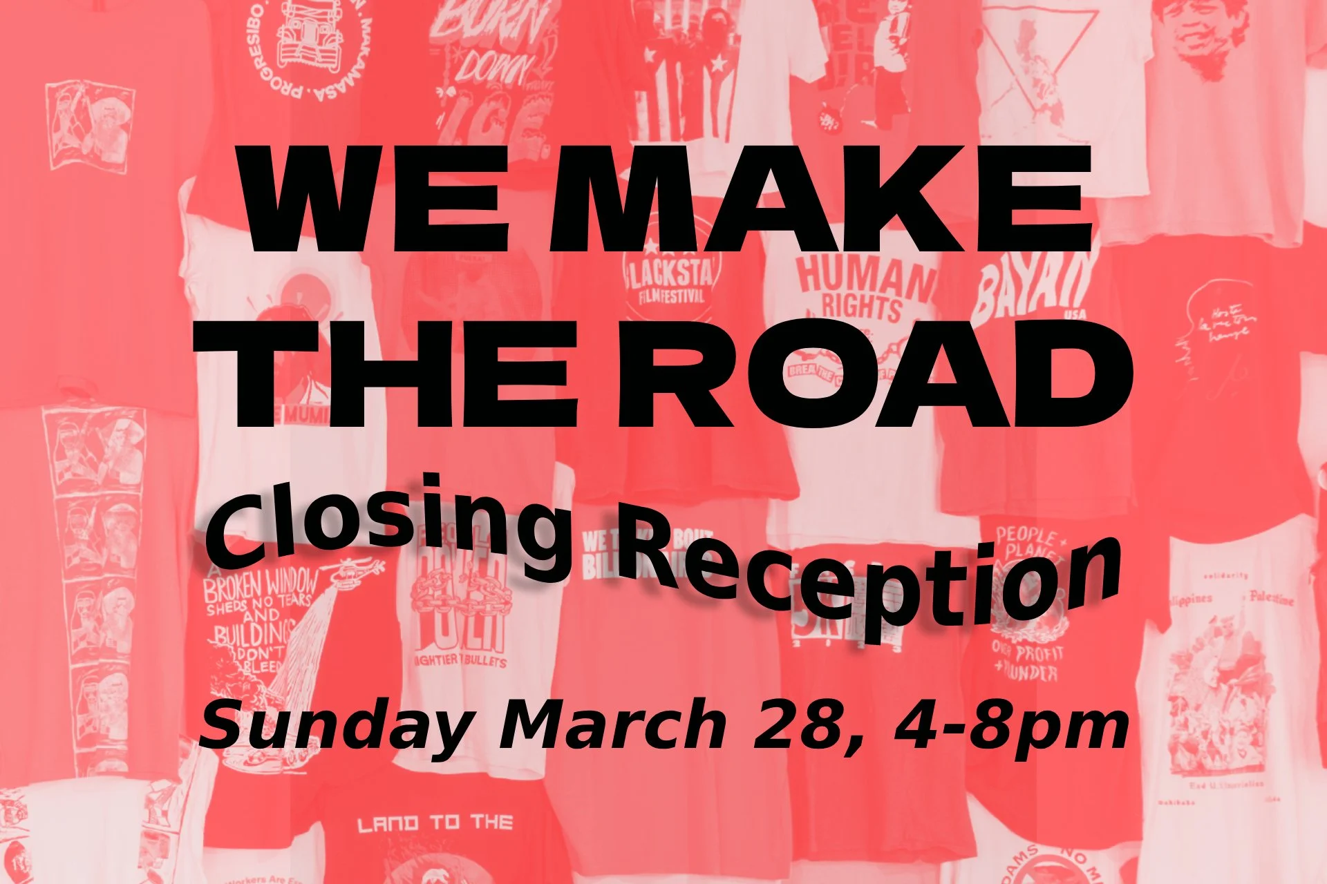 Sunday 3/28 from 4-8 pm: closing reception for WE MAKE THE ROAD, a benefit show supporting Abolition School. This will be your last chance to buy raffle tickets to win each of the artworks. There will be food and refreshments! Come eat together, celebrate all the artists who contributed their work to this project, and connect with each other
