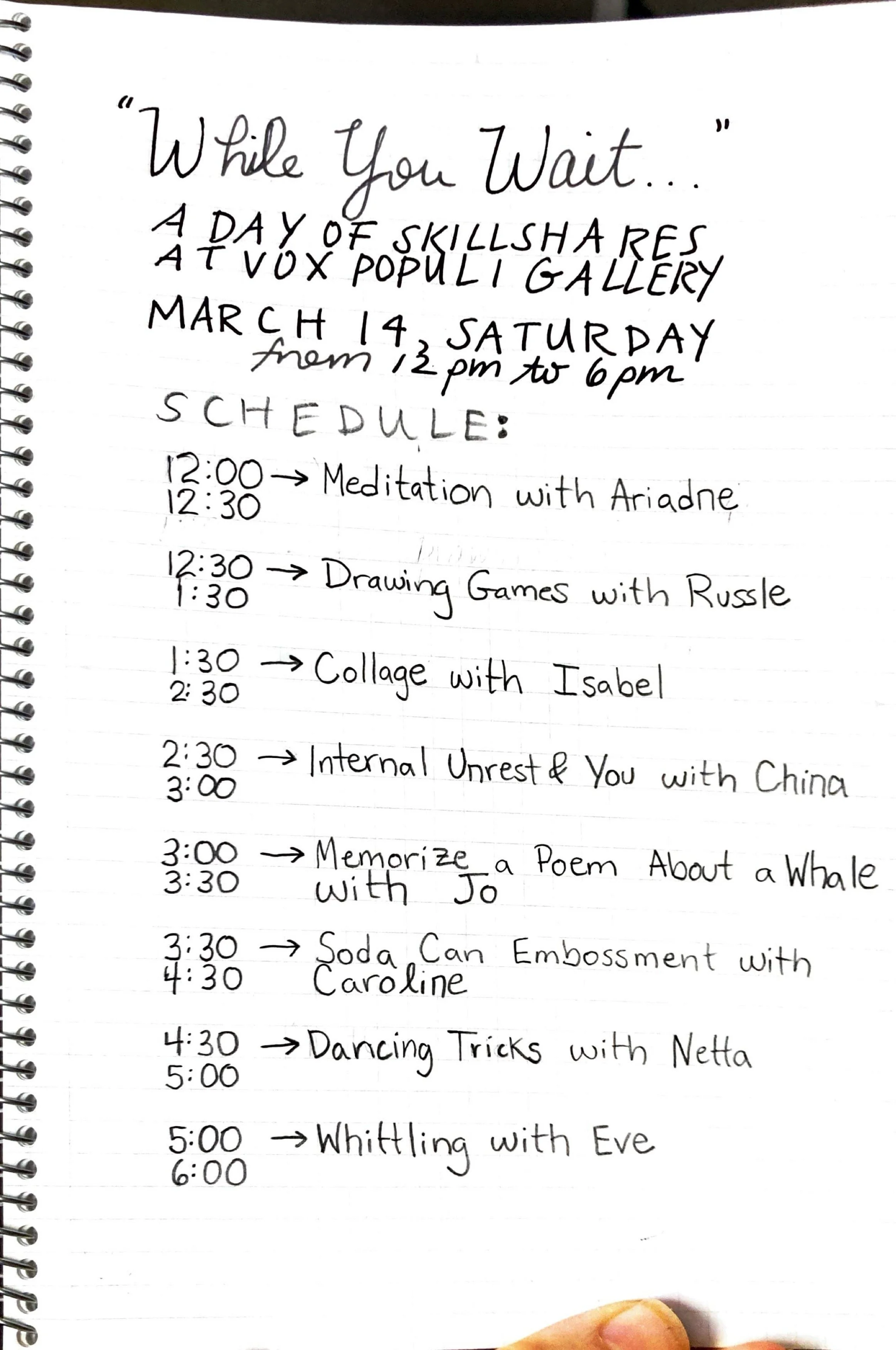 While You Wait - A Day of Workshops - Accompanying Practice Patience, An Exhibition by Lane Timothy Speidel