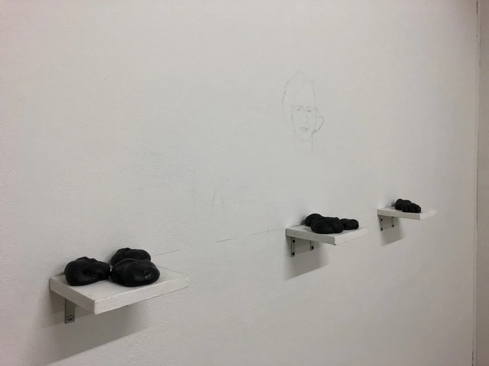 Willie Gladys Martin was born in Virginia in 1901 and died in Ohio the same year that I was born. Though I never met my great-grandmother, the two things that I grew up knowing about her were that she was a gifted baker and that she struggled with severe mental illness throughout much of her adult life. Heirloom is my attempt to understand her impact as a caretaker of both my grandmother and mother, and by extension the legacy of her care in me. The show, which includes both graphite drawings and sculptural works in bread, also extends my previous explorations of the drive to permanence in object-making and its relationship to illusions of bodily control and psychic autonomy.